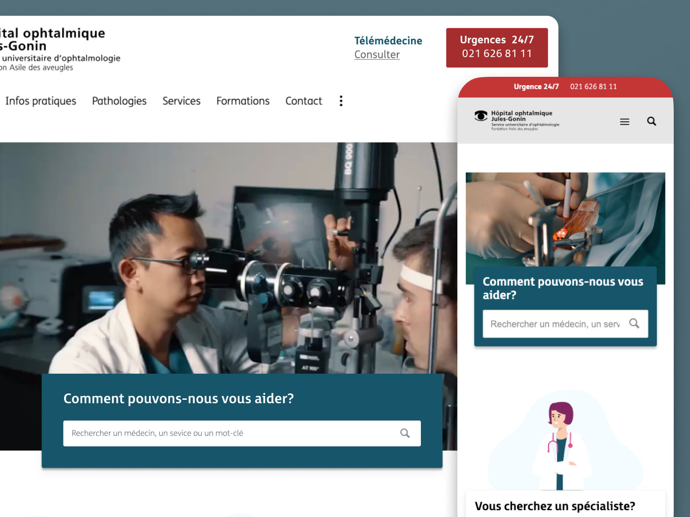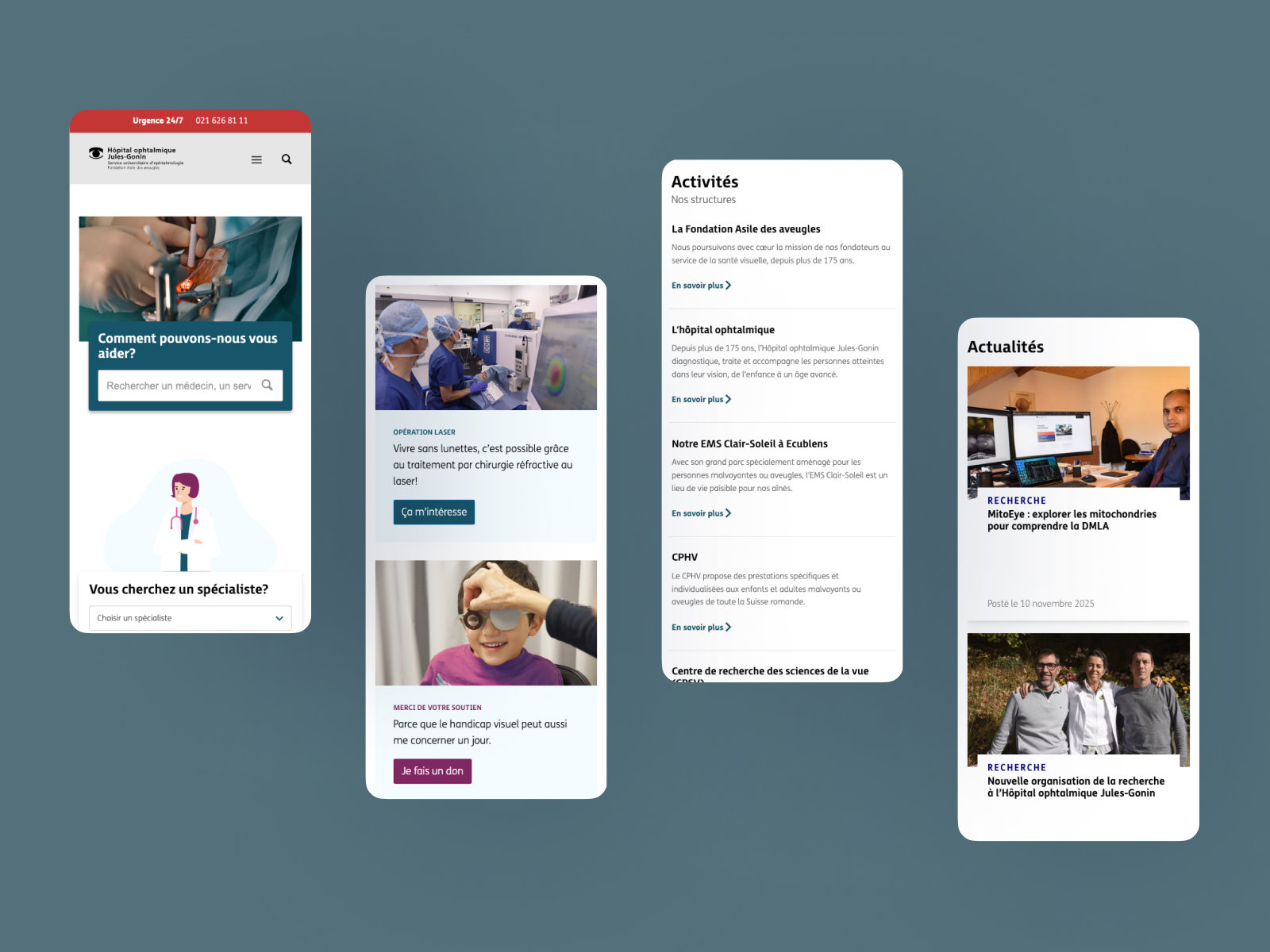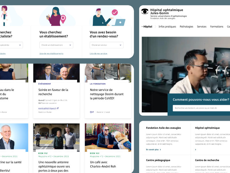 Refonte de la homepage du site de l'Hôpital ophtalmique de Lausanne pour améliorer la présence en ligne et l'accessibilité pour les patients.