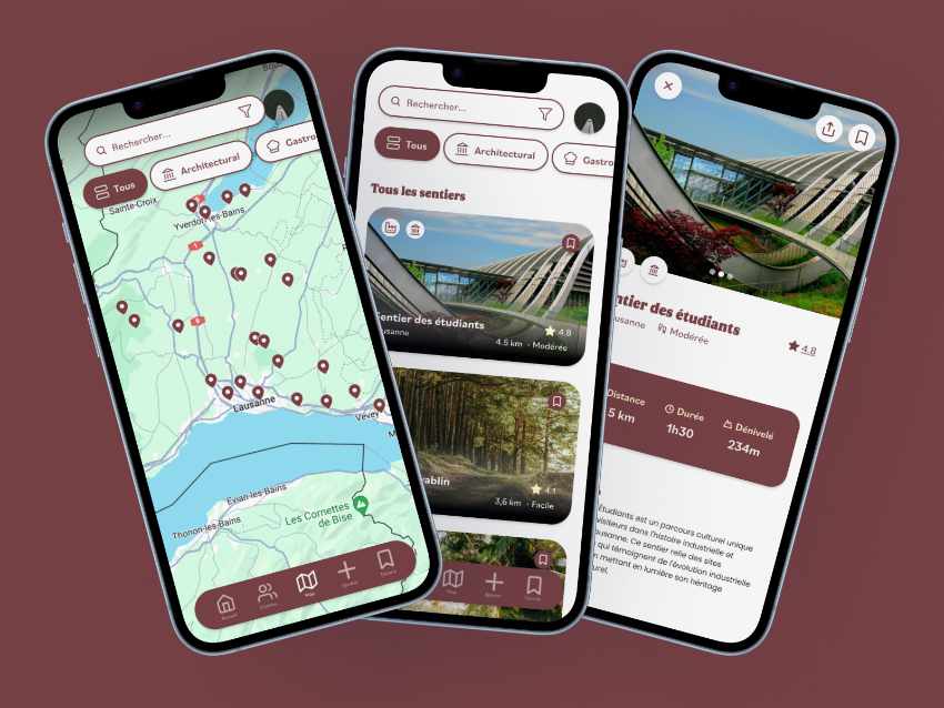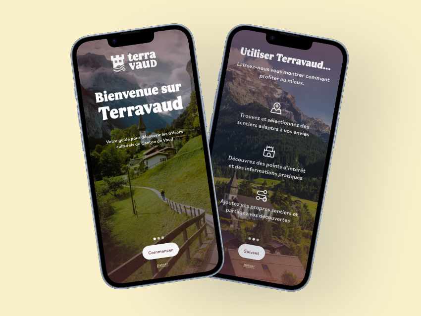 Terra Vaud est une application mobile conçue pour découvrir et valoriser le patrimoine culturel et naturel du canton de Vaud. L'application offre une multitude de parcours officiels, permettant aux utilisateurs d'explorer des sites historiques, des paysages naturels et des trésors cachés à travers des itinéraires thématiques. Elle offre aussi un fort aspect participatif, où les utilisateurs peuvent créer et partager leurs propres parcours, contribuant ainsi à l'enrichissement continu de la plateforme. L'application vise à promouvoir le tourisme local, encourager la découverte active et renforcer le lien entre les habitants et leur région.